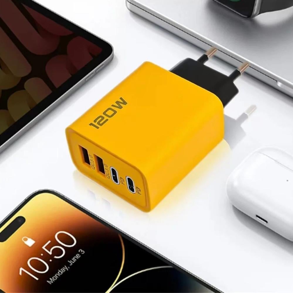 شاحن الحائط متعدد المنافذ USB Type-C و USB بقوة 120 واط يقدملك شحن سريع وفعّال لكل جوالاتك وأجهزتك الذكية!